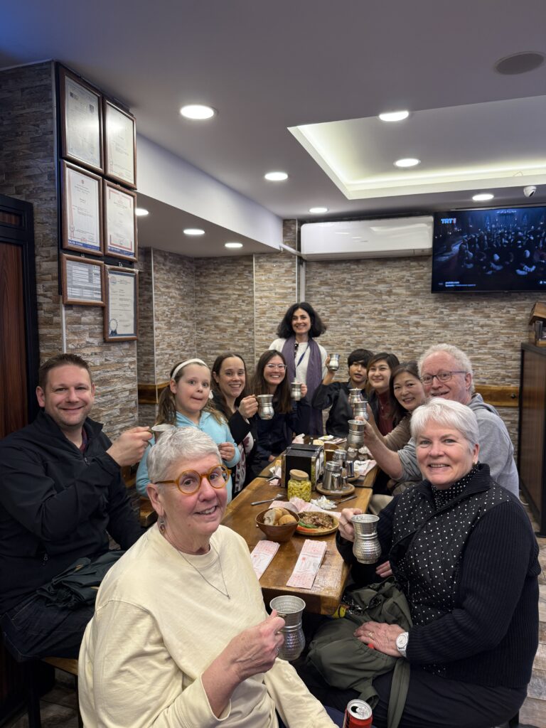 Our tour group with our guide standing in the back. In the metal cups is some sort of milk/yogurt drink and Kathy drank mine. I opted for a Coke Zero.