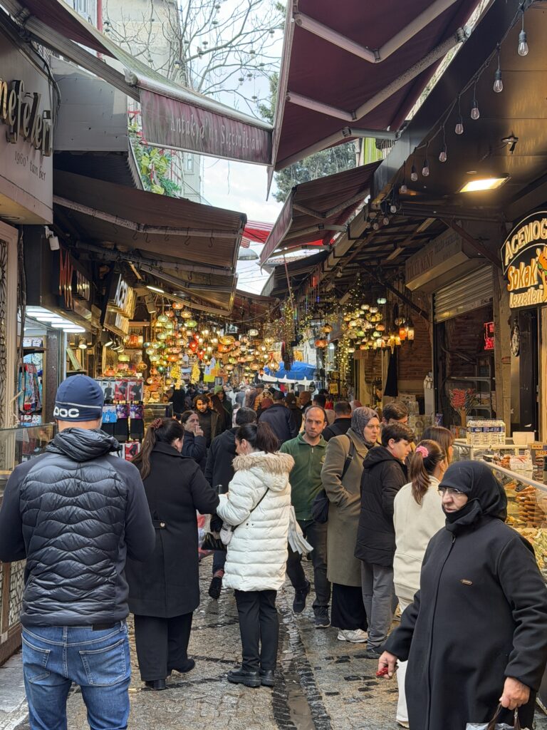 After our last stop for dessert, Turkish ice cream and baklava, the tour was over and we took the ferry back to old town where the grand bazaar is.