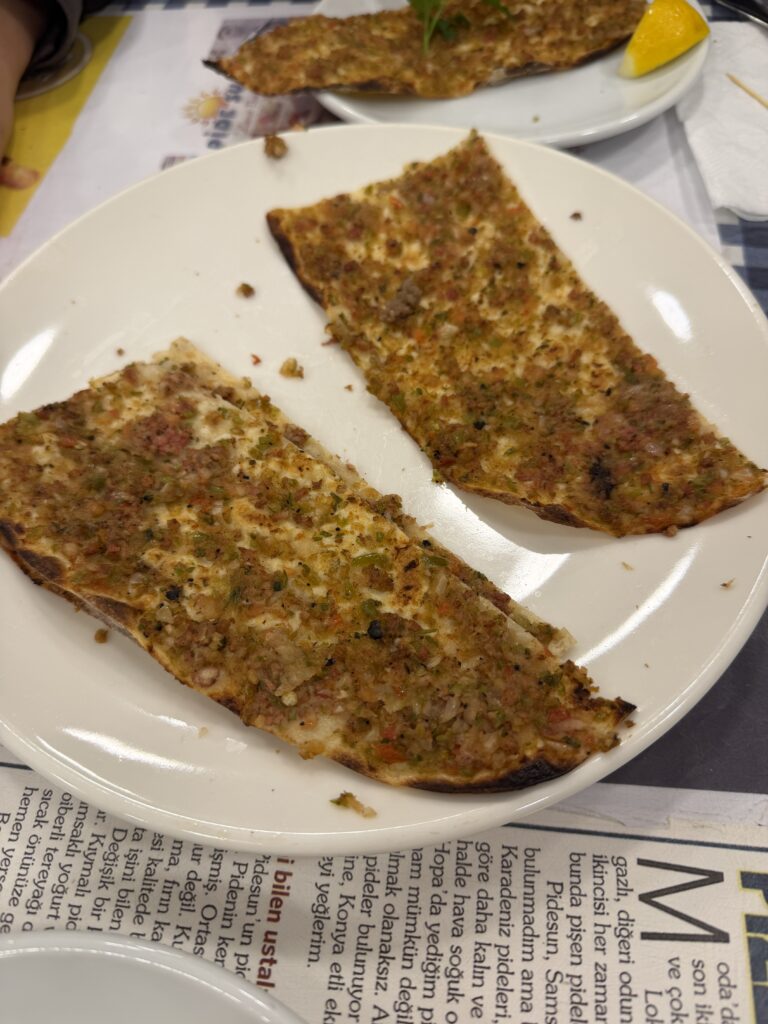 The breakfast selection was just as we remembered it with lots of bites. After breakfast you take the ferry to the Asian side of Istanbul. The Bosphorus separates the European side from the Asian side. We are staying on the European side. We went for Iskender kabobs, which I remember also from last time, they were good but again not as great as I remembered. We had 9 stops total and it really is a ton of food but there were several places I did not eat anything. The fried fish stop with the sardines and the mackerel sandwich was a definite no. Yogurt is a big part of their diet in Turkey and they get offended when you talk about Greek yogurt since they feel theirs is much better. The other stop opted out of was the lamb roasted over coals on a spit wrapped in the animals sweetbreads, the explanation was enough to put most of our group off.