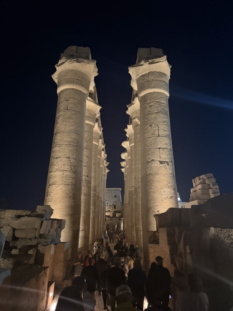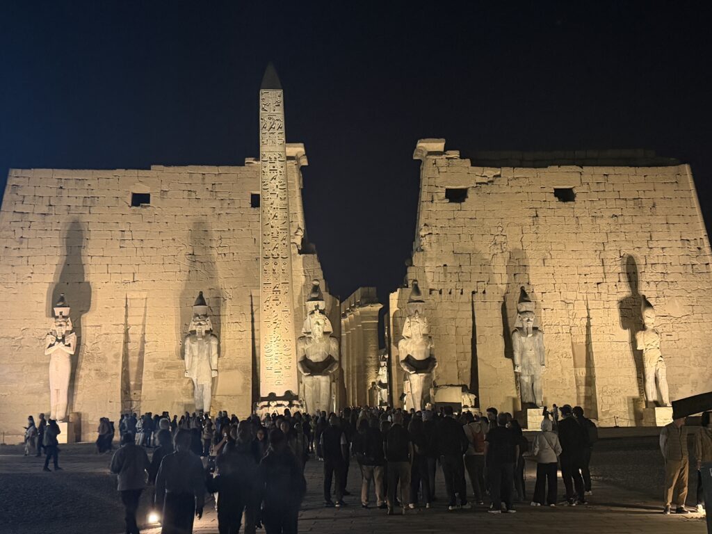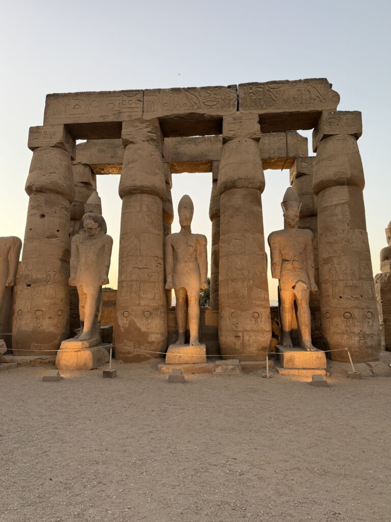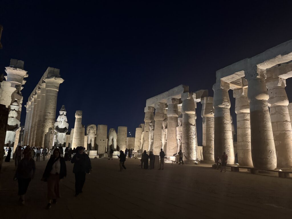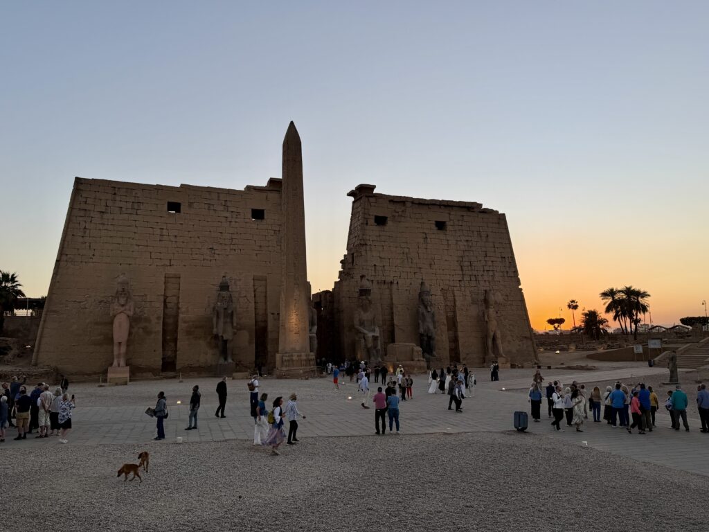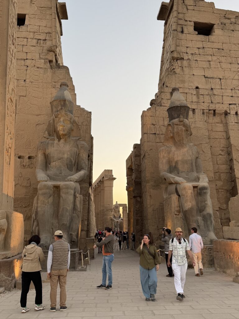 At 4:30 we had a safety review and orientation to the next few days. At 5:30 we departed for the Temple of Luxor. The Temple of Luxor is built on the bank of the Nile. It was started in 1390 BCE and took several pharaohs to complete including Ramses II. It is a spectacular temple and much smaller than Karnak Temple but it is amazing at night with the sunset and lighting.