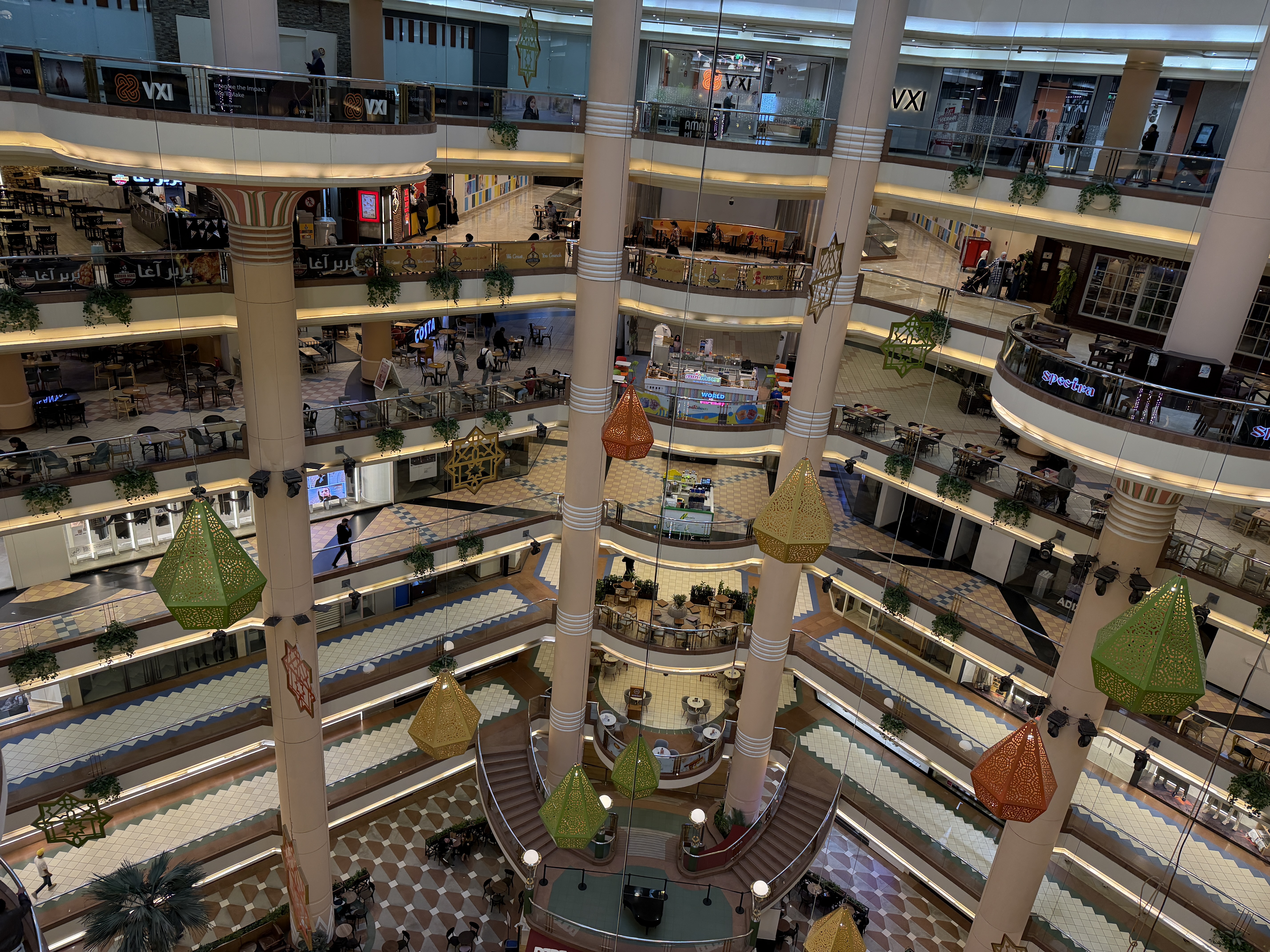 When we went to say goodbye to folks at some of the other tables they showed us some of their purchases from one of the stores in the mall. It was a baseball cap that looked like a polo cap but instead of a polo horse it had a camel embroidered on it. They said it was 5 dollars. Kathy said “I know you want to go get one” so off to the mall we went. What a difference a couple of hours makes. Everything was open and the mall was the place to be. The food courts were packed and it was totally different from earlier. We found the store and got the hat and we both managed to find a couple more items. Prices were great. What we found out later was that the mall pretty much shuts down during Ramadan from 4pm to 8pm and then picks back up and the stores will stay open until after midnight and the food courts until 5am. If we had not been so tired we would have spent more time walking around.