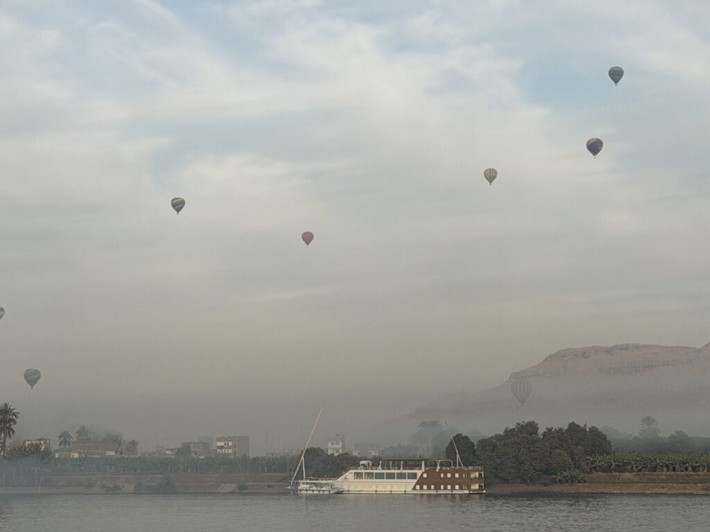 When we walked out to the buses we noticed all the hot air balloons so I guess somebody lucked out with the weather, the winds were calm enough to fly but that meant smoke/smog/dust was awful, we had a prettier day when we went.
