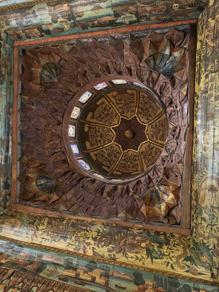 The ceiling in the coptic museum and the “carrier” on the right is what they used to bring the bride and her best friend to the church to be married. It is placed on a camel and strapped under the camels belly and has lots of wood inlays. No one can see into the career but the bride can see out.